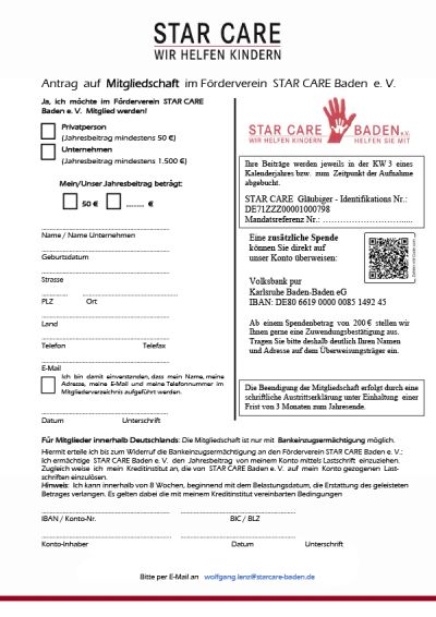 Wir freuen uns über Einzelspenden und natürlich über neue Mitglieder in unserem Verein. Schicken Sie uns einfach das ausgefüllte Formular zu – wir setzen uns mit Ihnen in Verbindung.